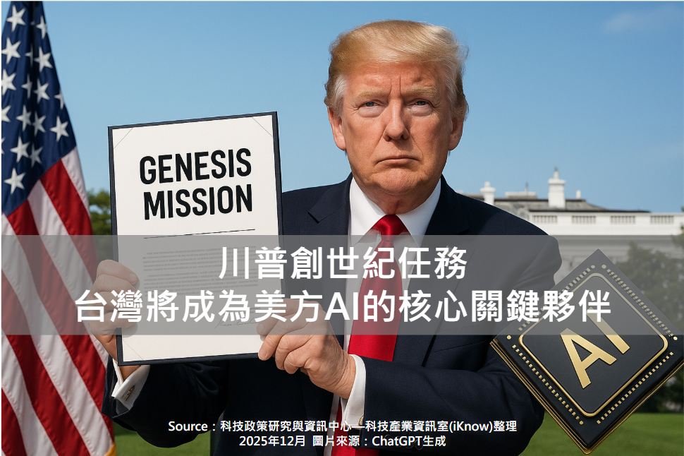 圖、川普創世紀任務 台灣將成為美方AI的核心關鍵夥伴 「創世紀任務」代表著美國將AI競爭提升至前所未有的國家戰略高度,同時透過聯邦權力集中監管的行動,試圖為美國的AI產業發展清除內部障礙,...More