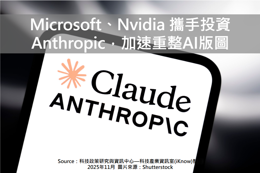 圖、Microsoft、Nvidia 攜手投資 Anthropic,加速重整AI版圖 近年全球AI產業競爭持續升溫,巨量算力需求推動科技巨頭積極重組合作策略。根據最新合作案,微軟(Micr...More