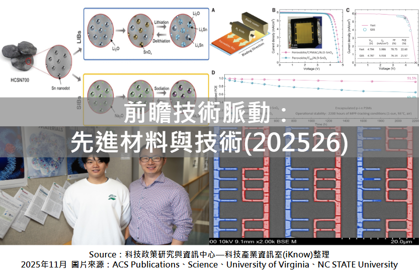 圖、前瞻技術脈動:先進材料與技術(202526) 硬碳錫奈米複合材料可製成高性能電池陽極 韓國浦項科技大學與韓國能源研究院的研究團隊開發出一種創新的硬碳...More