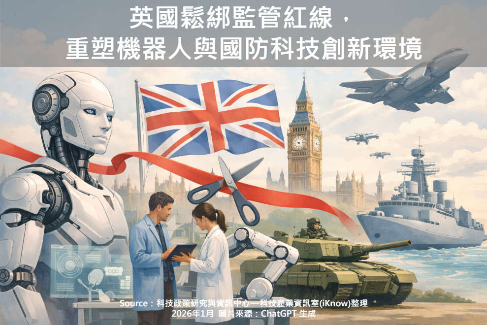 圖、英國鬆綁監管紅線,重塑機器人與國防科技創新環境 英國政府於1月16日宣布,將針對機器人和國防技術領域大幅鬆綁既有的監管規範,以加快創新技術的研發、測試與商業化進程。此一政策...More