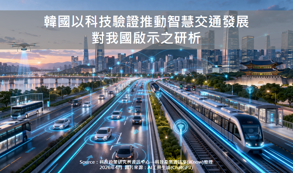 圖、韓國以科技驗證推動智慧交通發展對我國啟示之研析 在全球交通體系面臨都市壅塞、人口結構轉變、碳排放壓力與新興科技快速演進的多重挑戰下,各國政府紛紛將智慧交通視為推動城市永續發展與提升公共治...More