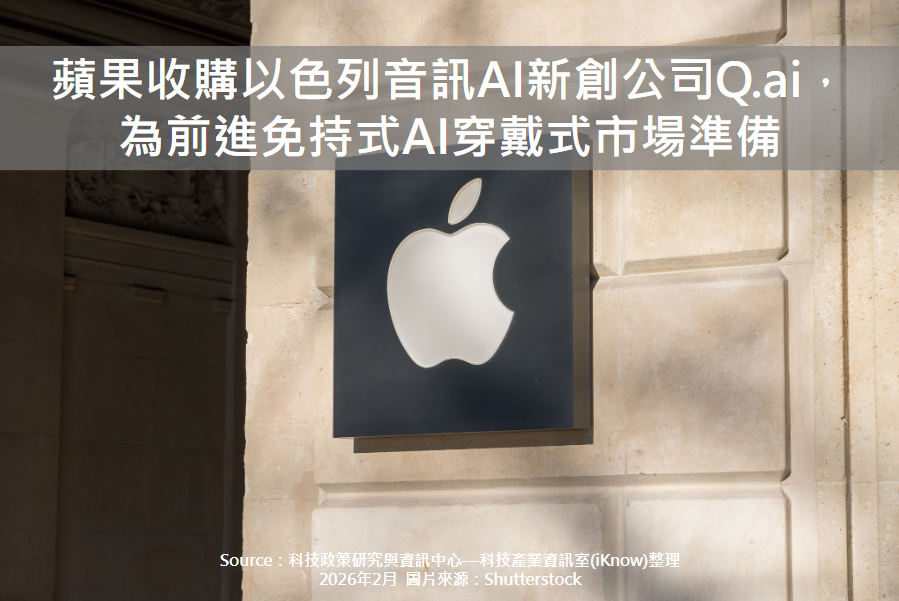 圖、蘋果收購以色列音訊AI新創公司Q.ai,為前進免持式AI穿戴式市場準備 蘋果公司於2026年1月29日確認收購以色列音訊AI新創公司Q.ai,預估交易金額近20億美元。此次收購是蘋...More