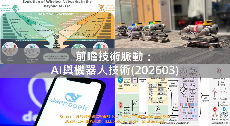 圖、前瞻技術脈動:AI與機器人技術(202603) 研究人員發布融合無線技術與人工智慧的藍圖 UCLA的研究人員提出了一個藍圖,旨在將無線技術與AI融合,創建能模擬人類常識的下一代無線...More
