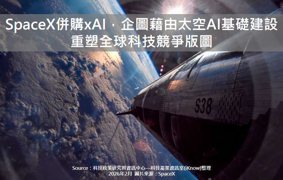 圖、SpaceX併購xAI,企圖藉由太空AI基礎建設重塑全球科技競爭版圖 2026年2月2日,SpaceX正式宣布併購人工智慧新創xAI,此舉不僅整合馬斯克(Elon Musk)旗下兩...More