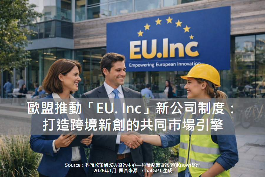 圖、歐盟推動「EU. Inc」新公司制度:打造跨境新創的共同市場引擎 近年來,歐洲新創企業在全球競爭中難以實現規模化發展,其原因在於其制度上的整合不易。儘管歐盟長期推動單一市場的理想架...More