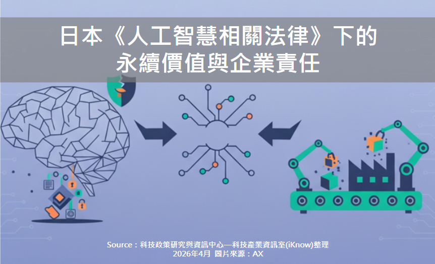圖、日本《人工智慧相關法律》下的永續價值與企業責任 隨著人工智慧(AI)技術的快速發展,其影響已由產業效率提升,擴展至社會治理、人權保障與國家競爭力等多重層面。在此趨勢下,日本亦逐步建...More