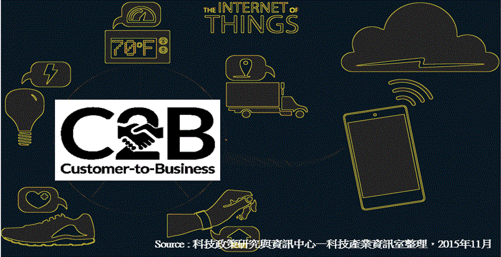 未來,網路革命升級到物聯網IoT,使得工業4.0製造業將以大量客製化取代大量生產,將隨客戶需求而生產,所以商業模式勢必也將改變,由過去工業時代以廠商為中心的B2C或B2B模式,正在逐步被網路時代以消費者為中心的C2B(Consumer-to-Business)模式所取代。
