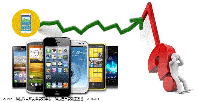 根據市場研究機構IDC預測,2015年很可能是智慧型手機之兩位數字成長率的最後一年。根據IDC最終統計,2015年全球智慧型手機出貨量達14.4億支,年成長率達10.4%。其預測2016年出貨量可達15.19億支,年成長率降至5.7%,而且一直到2020年智慧型手機都將只有個位數的成長率,所以五年的平均年複合成長率為6.0%。