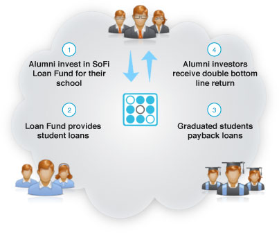 SoFi目標是成為「美國高學歷人才最信賴的金融服務公司」。美國多數大學生背負著就學貸款,學貸市場上更累積超過一兆美元的債款。為了減輕學生的負債包袱,SoFi建立創新的貸款模式,他們將希望獲得投資收益的人(放款方)與希望獲得貸款的人(借款方)串接起來,將學貸以債券的方式出售,也期望透過連結在學學生與校友,強化互動的社群網絡。