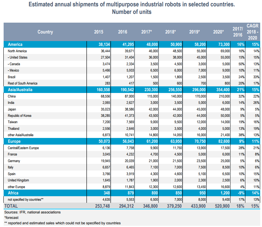 Executive Summary World Robotics 2017 Industrial Robots. IFR, 2017.