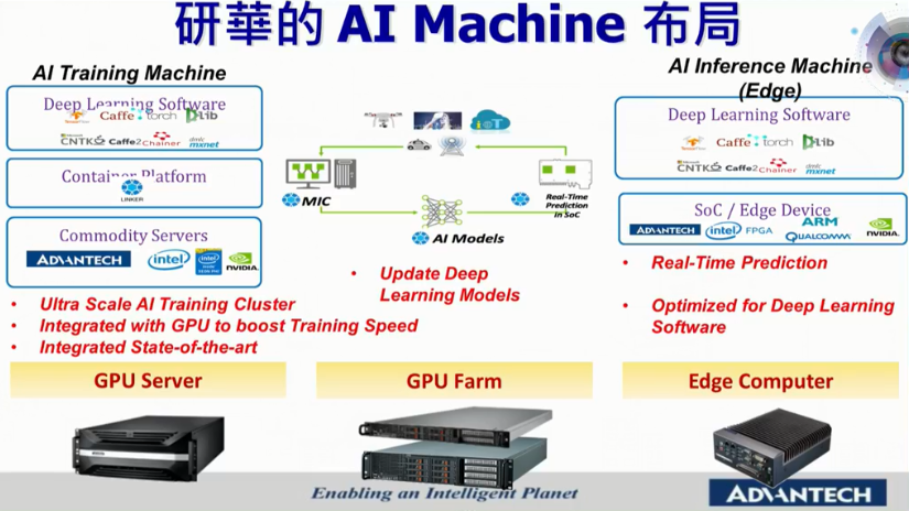 1. 為何AI的發展得以加速?(1)資料大量成長:車聯網、智慧工廠、電子商務等,每天產生大量的數據。(2)機器快速運算:一塊Nvidia板子安裝有2000個GPU,若一部電腦安裝4塊板子,就有8000個GPU可進行快速運算。(3)演算法開放:未來演算法將開放成為open sources,目前有:Google的Tensor flow、Berkeley的Caffe、Facebook的Torch。因為,未來若由少數的科技大廠壟斷AI的話,將是一種不可預知的大災難。所以,這些演算法將成為開放研發平台(open source)。