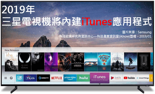 令人關注的是,三星與蘋果在智慧電視領域上開啟了新的合作,三星將在自家智慧電視上提供蘋果的 iTunes 線上影音服務,包括電影與電視影集的訂閱下載,以及支援讓手機/平板/電腦內容傳送到電視上播放的 AirPlay 2 功能,使得蘋果於2019年順勢推出串流影片服務的道路變得更加明確。其實,蘋果宣布合作的廠商是全球幾家大型的數位電視製造商,還有:LG和Vizio等電視製造商使用其AirPlay和HomeKit技術。