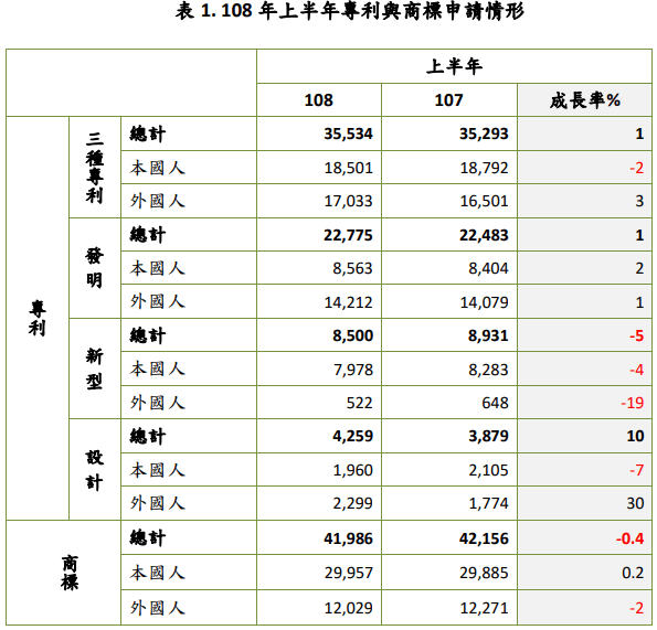 智慧局公布108年上半年智慧財產權趨勢-圖表