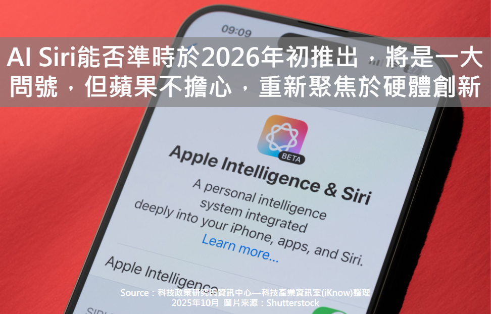 圖、AI Siri能否準時於2026年初推出,將是一大問號,但蘋果不擔心,重新聚焦於硬體創新
