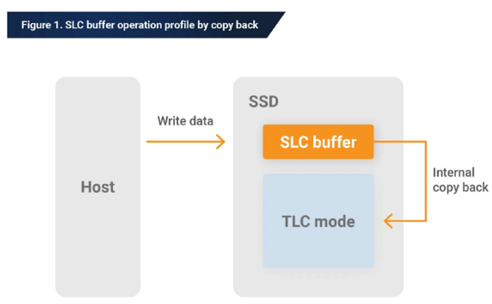 如圖一所示,針對 "控制器a)步驟:維護至少一個MLC和SLC非揮發性存儲模組的地址映射... ": 於訴狀第67段,Vervain將該元件對應到下列群聯電子技術文件,以說明被控的群聯電子控制器,可控制的固態硬碟內包含MLC ( "TLC模式", 3-bit per cell) 記憶體和 SLC (Single Level Cell) 緩衝區。