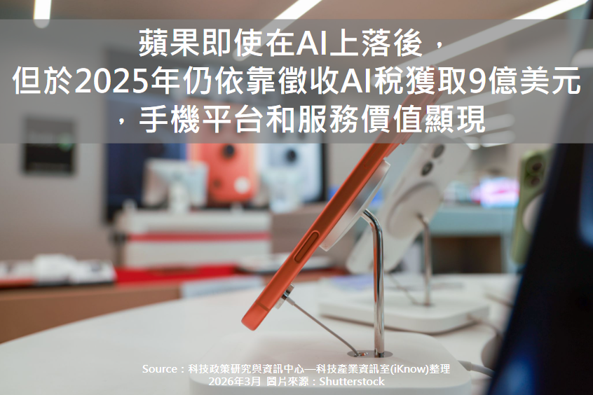 蘋果即使在AI上落後,但於2025年仍依靠徵收AI稅獲取9億美元,手機平台和服務價值顯現