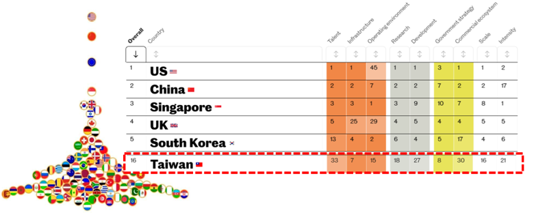 圖4 英國《觀察家報》2025年「全球人工智慧指數」排名,台灣排第16名