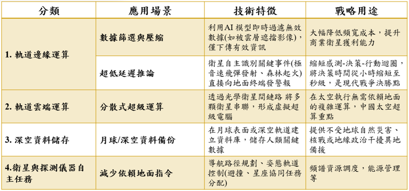 表1 太空資料中心在太空算力的用途分類