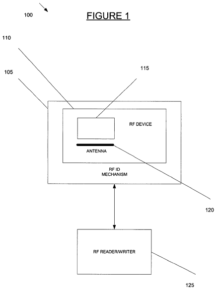 storing first identification information in the memory on a chip (Fig.1 - 115) with a radio frequency antenna (Fig.1 - 120);