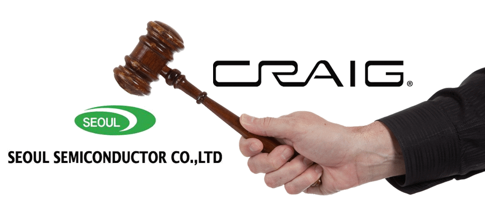 首爾半導體(Seoul Semiconductor) v. Craig Electronics專利侵權案[1:14-cv-22728],美國弗羅里達州南區聯邦法院於2015年7月23日做出判決(Consent Judgment),是有利於首爾半導體的判決: