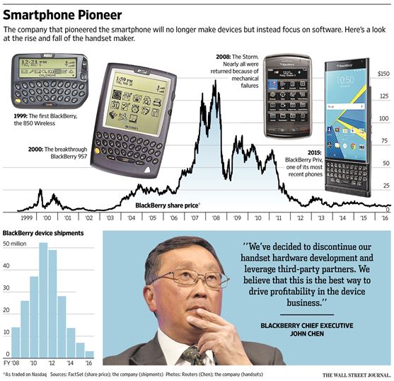 - BlackBerry to stop making phones. The Guardian, 2016/09/28.