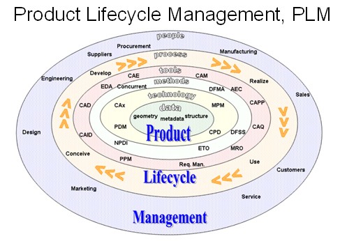 產品生命週期管理(PLM)除了生命週期概念外,尚包括產品與管理,其中產品包括與產品相關之資訊與資料,包括資料(Data)、技術(Technology)、方法(Method)、工具(Tools),而管理即是管理活動所牽涉到的人員(People)。整合上述概念,即可發現,產品生命週期管理(PLM)即是利用資訊科技進行企業產品開發與銷售等之完整經營活動管理。而從這個角度也不難發現,為何產品生命週期管理(PLM)和和CRM(客戶關係管理, Customer Relationship Management)、SCM(供應鏈管理, Supply Chain Management)與ERP(企業資源規劃, Enterprise Resource Planning)並列為企業資訊管理的四根大柱子。