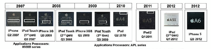 圖一、從2007年至2012年之Ax晶片